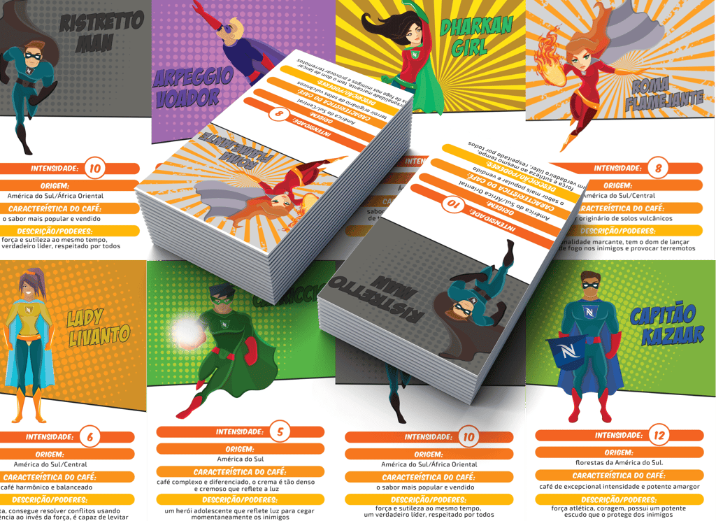 A cada trimestre, um novo herói assumia o protagonismo da liga, desafiando os vendedores a incorporarem suas características na abordagem comercial. Se o destaque era um café intenso, como o Ristretto, por exemplo, era hora de vender com mais energia, atitude e foco em performance. Se a vez era de um perfil mais suave e equilibrado, o discurso precisava refletir leveza, escuta e refinamento.